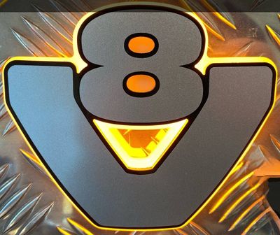 LED BADGE - "V8" EMBLEM AMBER 13cm
